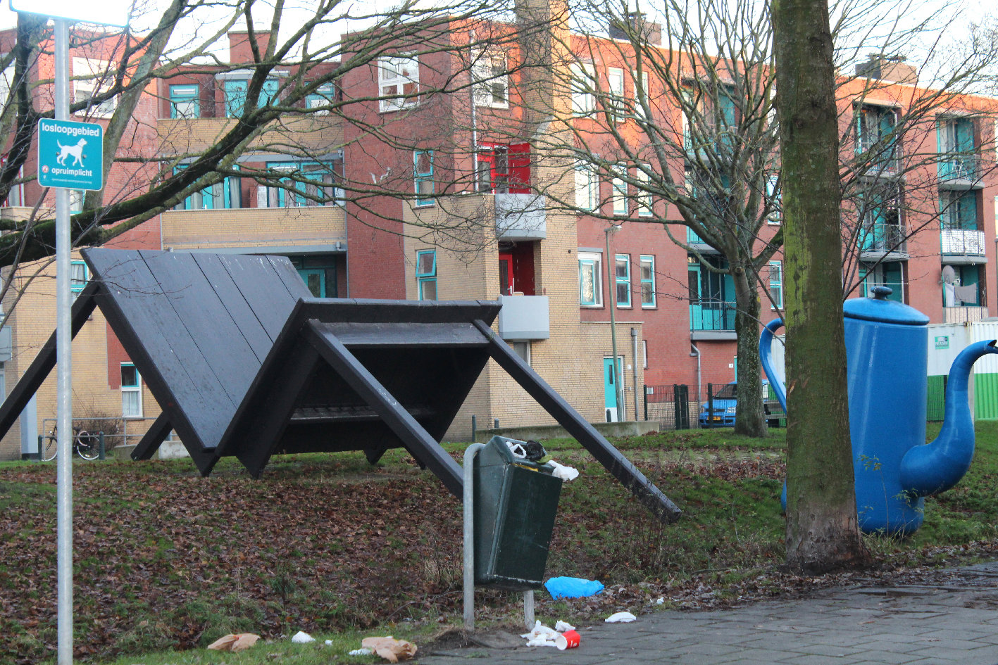 “Hier kun je gewoon glijbanen (wijst naar gebroken tafel bij de koffiepot).” – Meisje