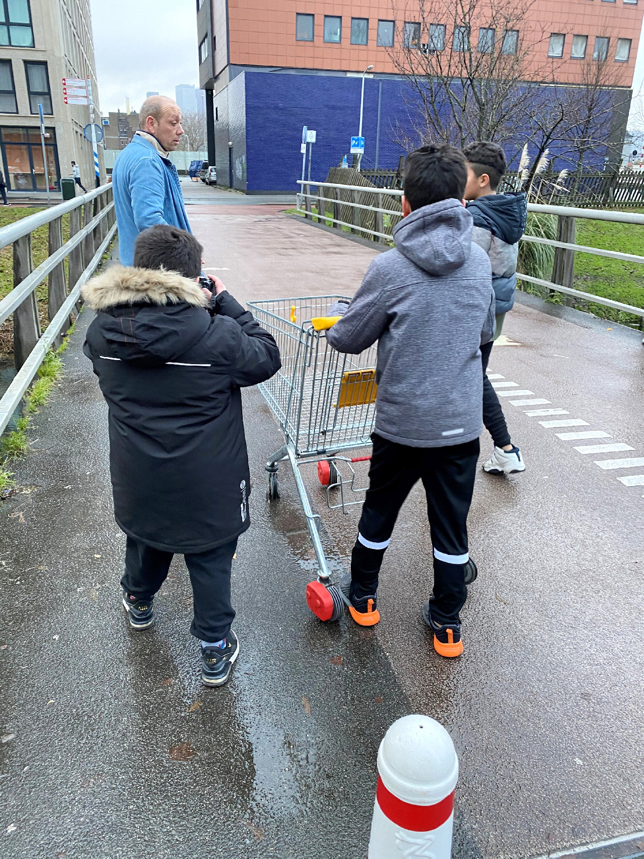 Tijdens een van de fotowandelingen treft een van de jongens een achtergelaten winkelwagen aan. Het valt hem direct op dat er nog een muntje in zit. Samen met de andere jongens brengen ze de winkelwagen terug naar de supermarkt om de hoek. De buit: 50 cent. Een van de jongens vertelt vervolgens trots dat hij dit vaker doet: “Je kan er geld mee verdienen!”. Op de vraag wat ze van plan zijn om te doen met het muntje, antwoorden ze: “vuurwerk kopen”, “een lolly kopen”, “broodjes halen” en “bewaren”. Aan het einde van de wandeling worden er lolly’s mee gekocht bij een buurtwinkel. “Hier koop je lekker en goedkoop eten, lolly’s zijn 5 cent.”, aldus de jongen met het muntje.