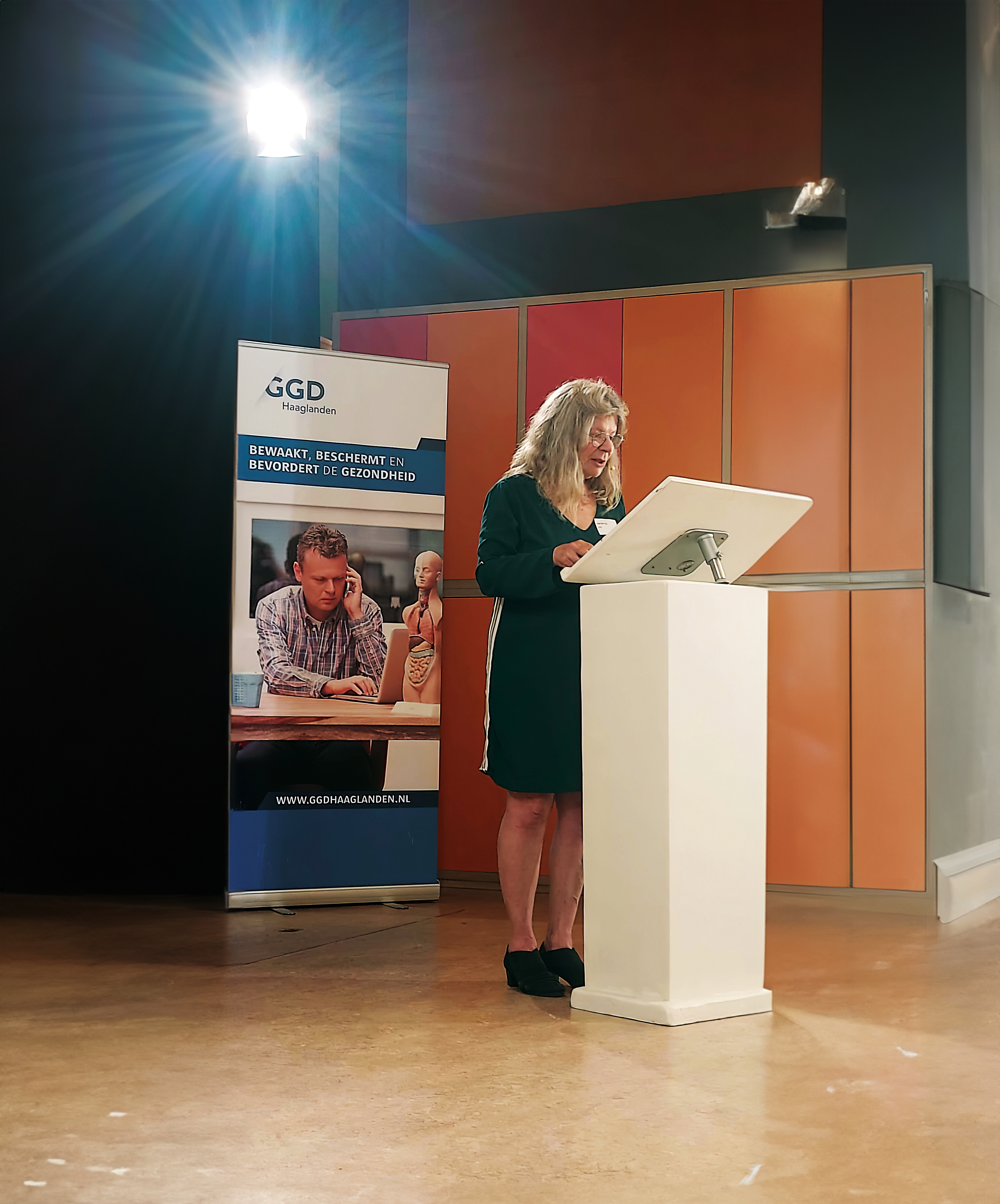 De Haagsche Praat is een interne traditie van en voor professionals van GGD Haaglanden, met als doel deskundigheidsbevordering en kennisuitwisseling. Zo leidt dagvoorzitter Marion Suijker, Productgroepmanager en plaatsvervangend directeur bij GGD Haaglanden, de middag in.