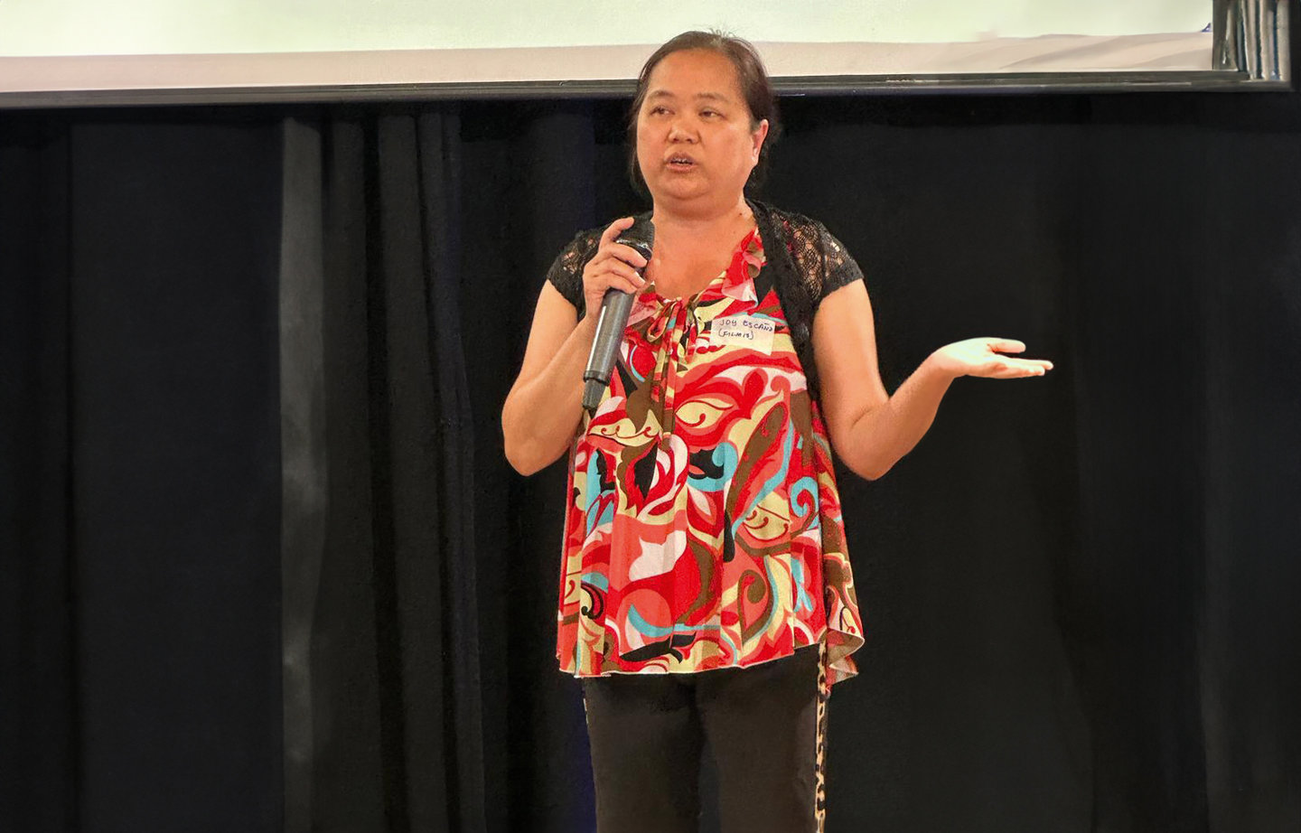 De laatste die het podium betreedt en door Richard wordt geïnterviewd, is de Filipijnse Joy, die als ongedocumenteerde het klappen van de zweep kent. Zij is een van de oprichters van FILMIS (Filipino Migrants in Solidarity), een vereniging die zich inzet voor de rechten van Filipijnse migranten. Joy maakt zich met name hard voor de kwetsbare positie van Filipijnse huishoudelijke werkers zonder verblijfspapieren en dus zonder zorgverzekering. Ze vindt het belangrijk om haar verhaal te vertellen en benadrukt dat angst, onzekerheid en het gevoel er niet bij te horen bij deze groep een grote rol spelen.