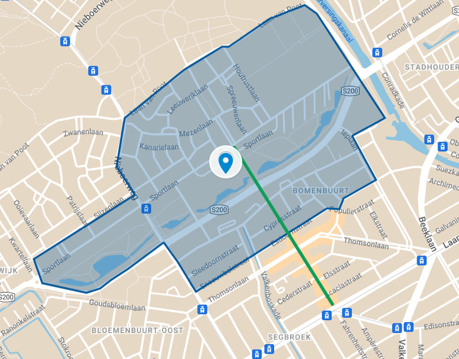Gebied waarin omwonenden een brief hebben ontvangen met informatie over de (komst van de) PWO (in groen de Fahrenheitstraat) (Bron: Google Maps)