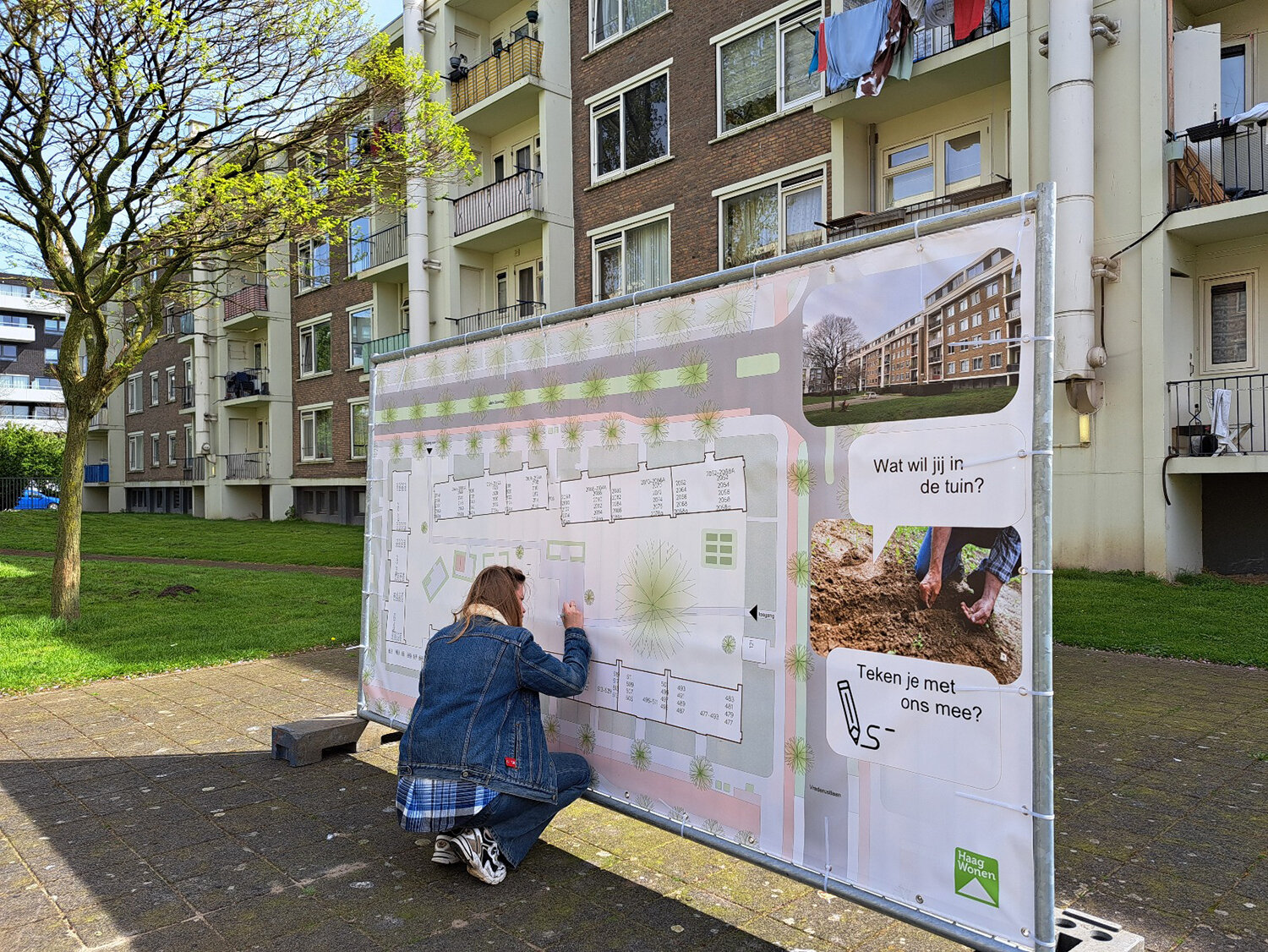 Bewoners denken mee over herinrichting binnentuin in wijk Bouwlust en Vrederust (bron: Esther Vlasveld, GGD Haaglanden)